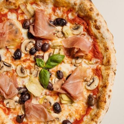 San Marzano tomato, fior di latte mozzarella, prosciutto, olives, artichokes, mushrooms