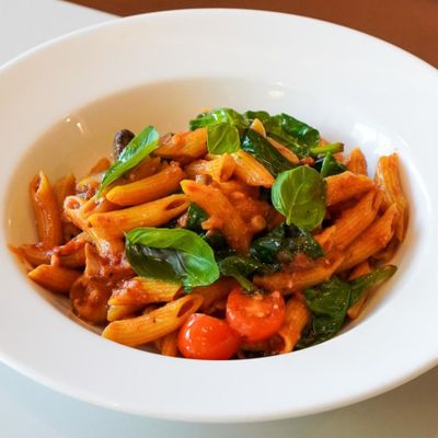 Penne pasta, napoli sauce, anchovies, olives, capers, garlic, cherry tomato, fresh chilli (mild) (VA, GF0)