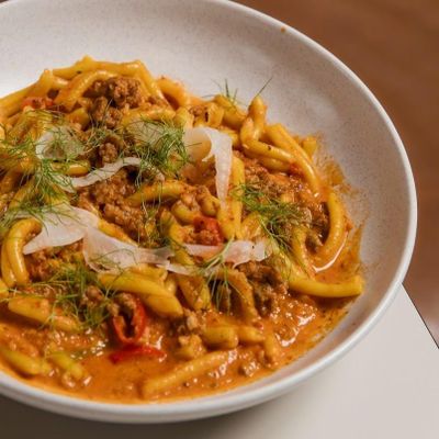 Vodka sauce, Italian sausage, garlic, chilli, pickled fennel, fresh herbs, pecorino, chilli oil (GFO, VA)