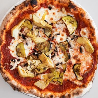 San Marzano tomato, Fior di latte mozzarella, eggplant, zucchini, mushrooms, artichoke (V)