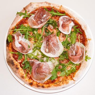 San Marzano tomato, Fior di latte mozzarella, prosciutto, extra virgin olive oil, rocket