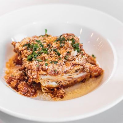 Liliana's pork & chicken ragu, béchamel, between thin fresh layered pasta sheets, fresh parmesan